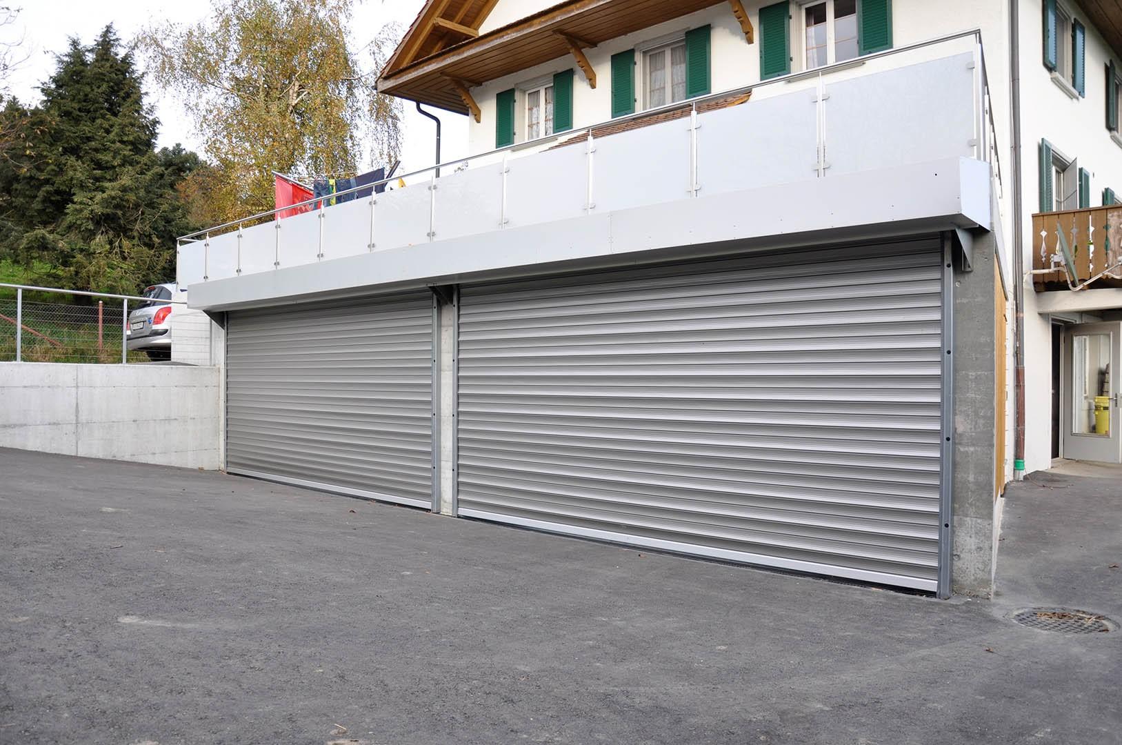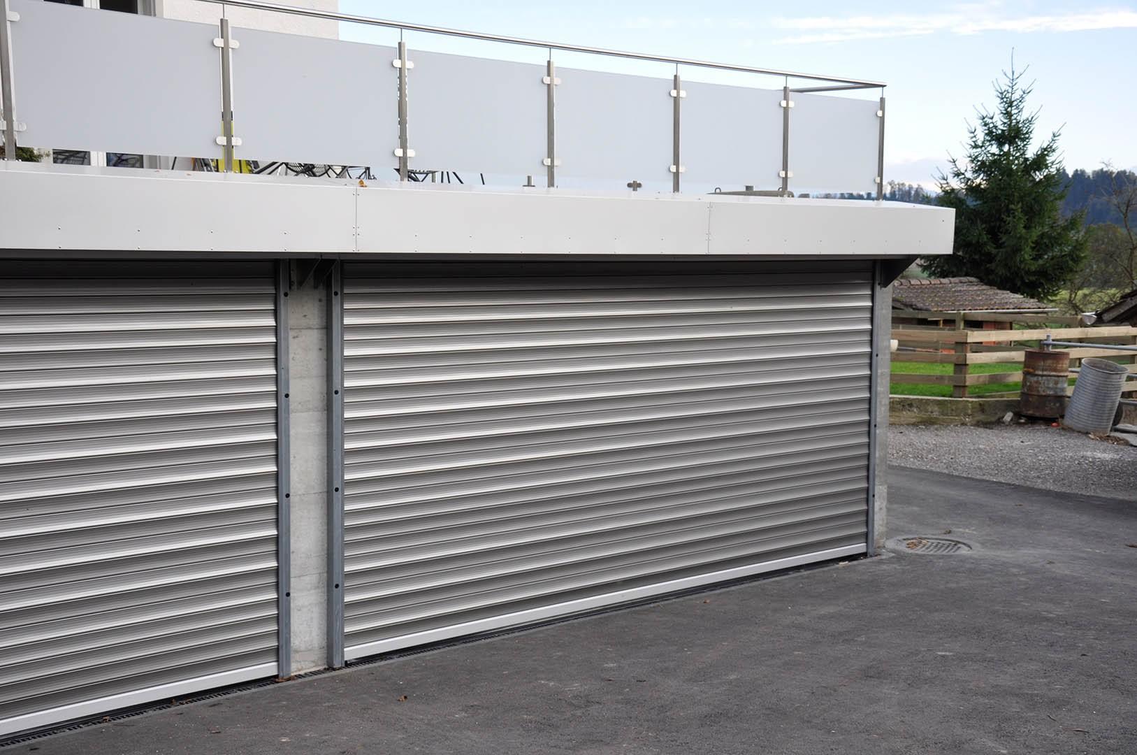 Die massiven Stahl-Führungsschienen mit geräuschdämmenden Kunststoff-Leisten werden auf den bestehenden Untergrund montiert. Bei sehr grossen oder stark windexponierten Toren kommen zusätzliche Sturmhaken zum Einsatz. Die Torpanzer-Welle wird aus einem der Torgrösse angepassten, Stahlrohr gefertigt und auf beidseitigen Konsolen mit Stehlagern montiert. Zur sicheren Automation des Tores stehen langlebige GfA-Aufsteckantriebe mit hohem Drehmoment und integrierter Fangvorrichtung zur Verfügung. Werden unsere Tore im Wohnungsbau eingesetzt, montieren wird die komplette Anlage auf spezielle Schalldämmlager und verhindern so störende Vibrationen und Übertragungen ins Gebäude.