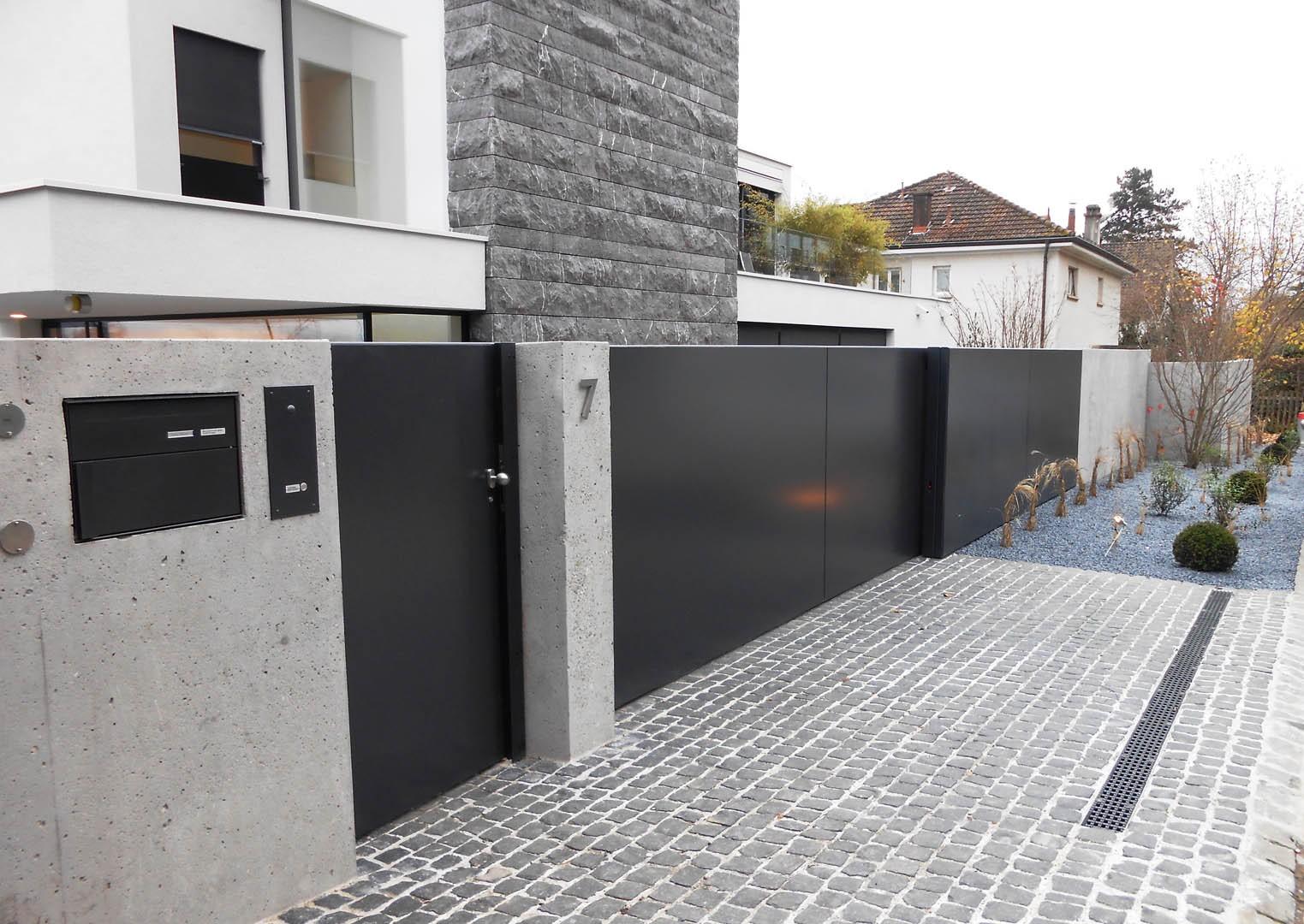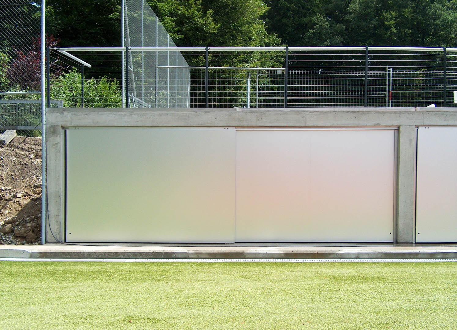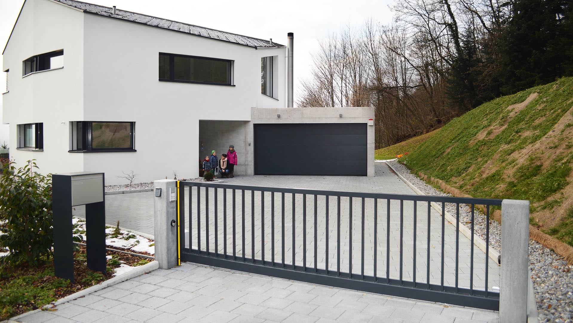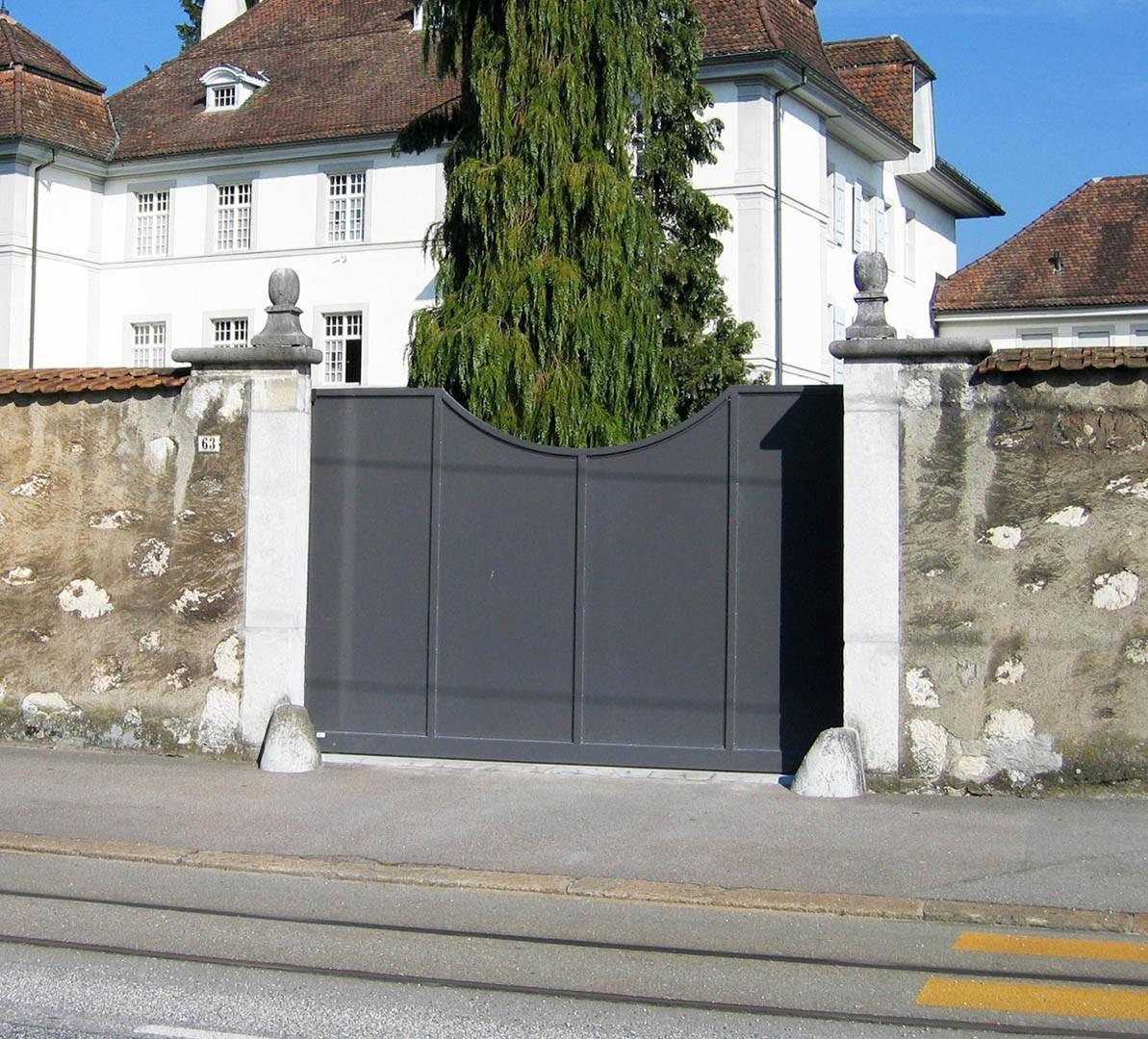 Für stark frequentierte Tore in Tiefgaragen oder für Produktionsstrassen in der Industrie werden meistens unten laufende Schiebetore verwendet. Durch die kugelgelagerten, gross dimensionierten Laufrollen können die Tore sehr leichtgängig bewegt werden. Arealabschlusstore werden als freitragende Schiebetore ausgeführt. Das heisst, keine störende Bodenschiene welche im Winter anfriert oder dem Schnee-Räumungsdienst den Weg versperrt. Aussergewöhnliches spornt uns immer wieder an, wie etwa die Herstellung von Hangartoren für Flughäfen oder für das Militär. Die Tore können mit Schienen an der Decke, am Sturz befestigt oder als untenlaufende Variante, am Boden montiert werden. Spezial-Laufwerke mit Laufrollen aus hochwertigem Kunststoff oder Edelstahl sorgen für eine sanfte Bewegung.