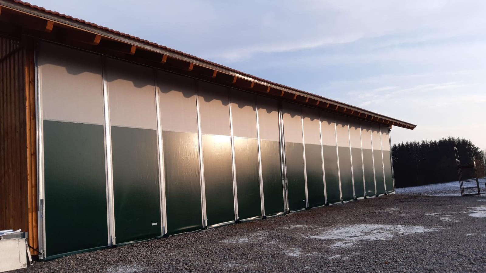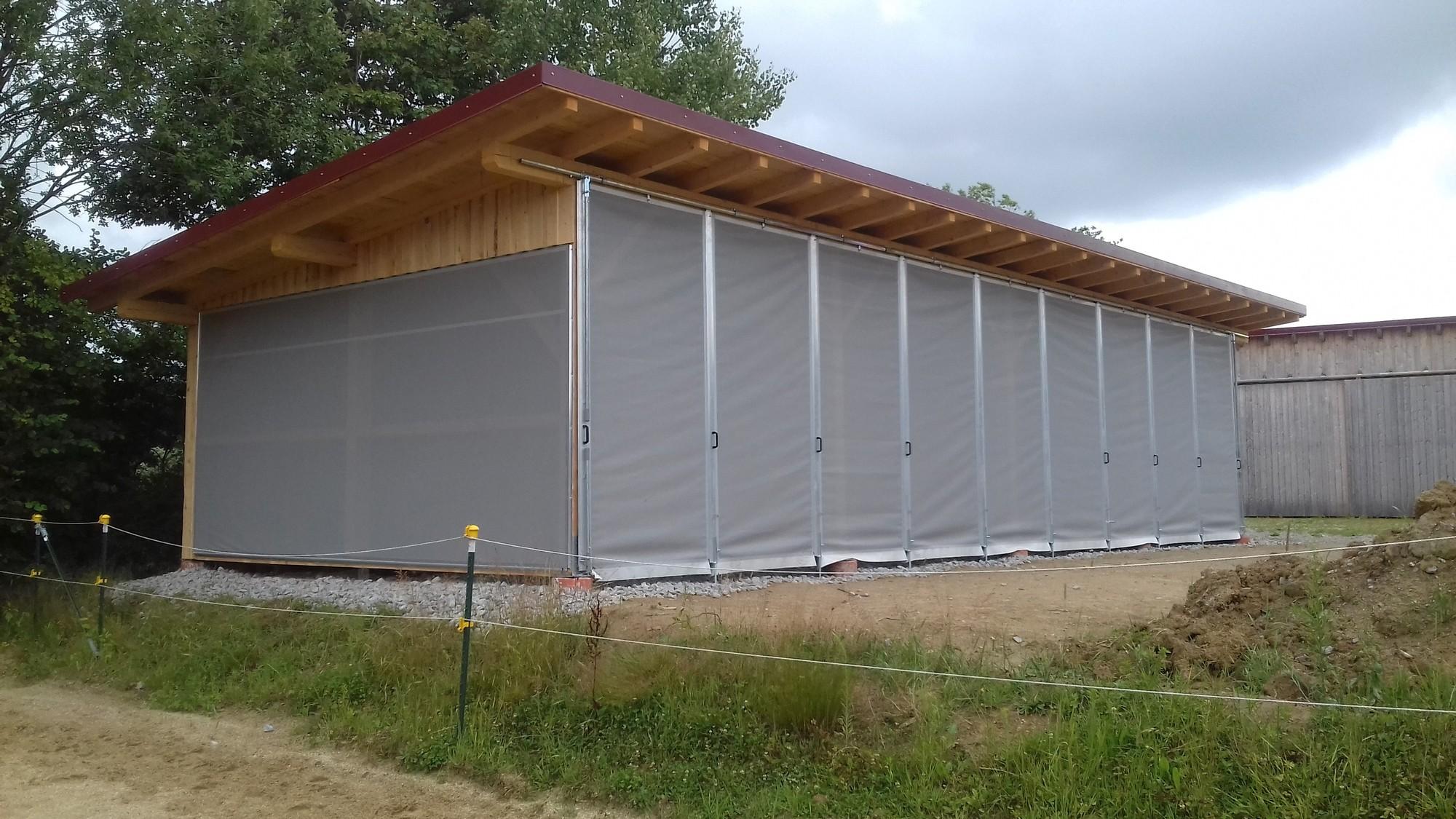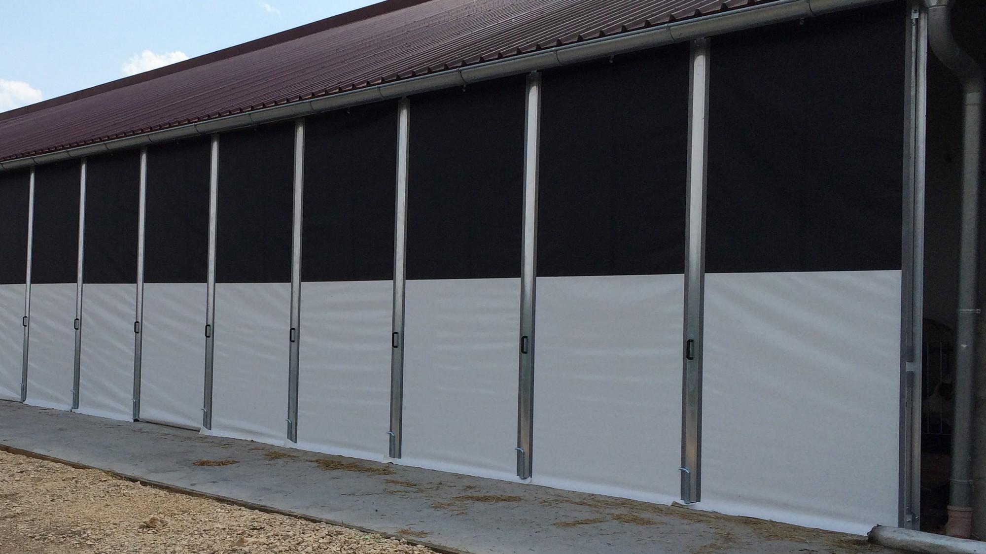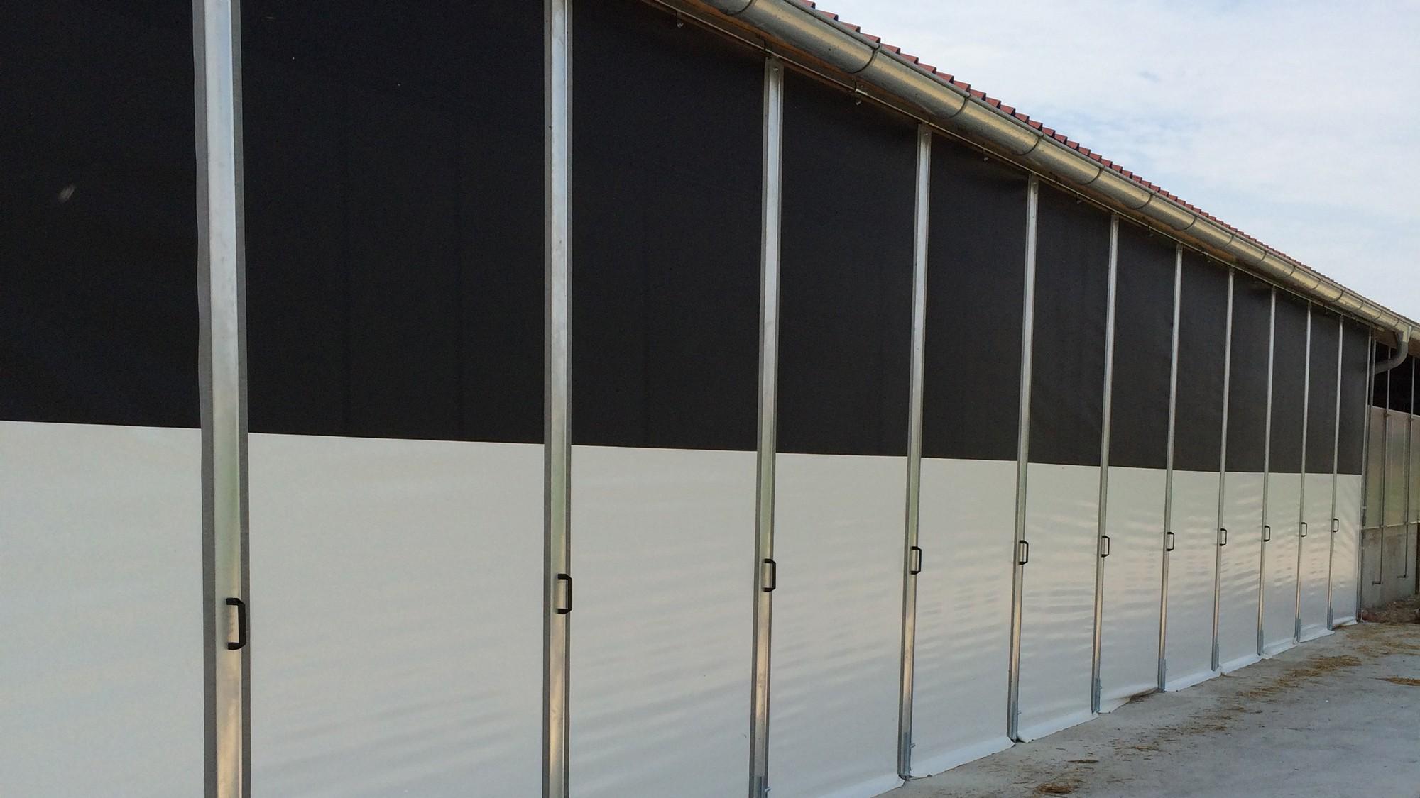 Sämtliche Elemente unserer Schiebevorhänge sind verschiebbar an einer hochwertigen MEA-Schiene aufgehängt. Per Hand öffnen oder schliessen Sie Ihren Schiebevorhang ganz nach Bedarf – ob nur über einen bestimmten Abschnitt oder über die gesamte Breite hinweg. Auf Wunsch unterteilen wir Ihren Schiebevorhangauch, zum Beispiel mit einer Plane im unteren Bereich und einem Netz im oberen Sektor. Das sorgt für Licht- und Windschutz im Bodenbereich sowie für grosszügigen Luftaustausch unter der Decke.